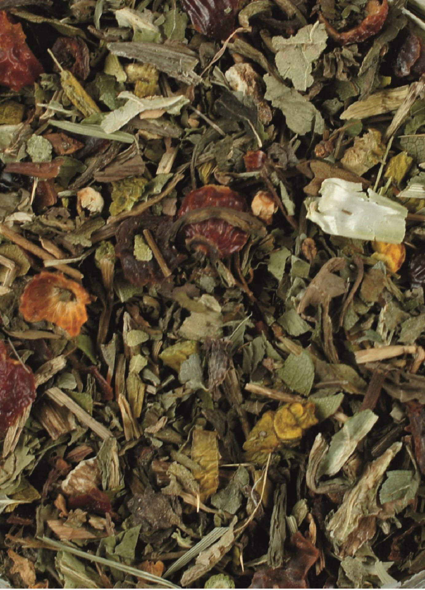 | Löwenzahnkraut mit Wurzeln, 30 % Hagebuttenschalen, 15 % Weissdornblätter mit Blüte, Mariendistelkraut, Ginkgoblätter, Echinacea |